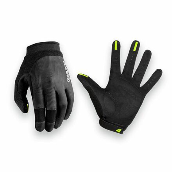 If you're looking for a tough and durable pair of bike gloves, the Bluegrass React is one of the best. Their thin and softly padded palm ensures a comfortable feeling on the handlebars even when freeriding. On the upper side, there's a lightweight and breathable stretch mesh to keep your hands cool during even the longest rides. In short, a perfect combination. Four-way-stretch breathable mesh on the upper construction Slim-fit neoprene cuff ensures maximum durability and comfort Adjustable strap wrist closure with silicone gripper gives you an individual fit Soft-padded palm aids in reducing hand pain Breathable perforated palm to improve ventilation and comfort Moisture-wicking mesh finger gussets enhance ventilation and sweat evaporation Soft-touch covered thumbs to clean dirt and sweat from face and eyewear Hollow overlay thumbs maximise durability and avoid long-ride blisters Thumbnail reinforcement Fade-resistant sublimated graphics for a modern look Flexible zone on brake finger knuckles to react fast Silicone print on brake fingertips for a grip control Capacitive seams keep you connected with your touchscreen devices