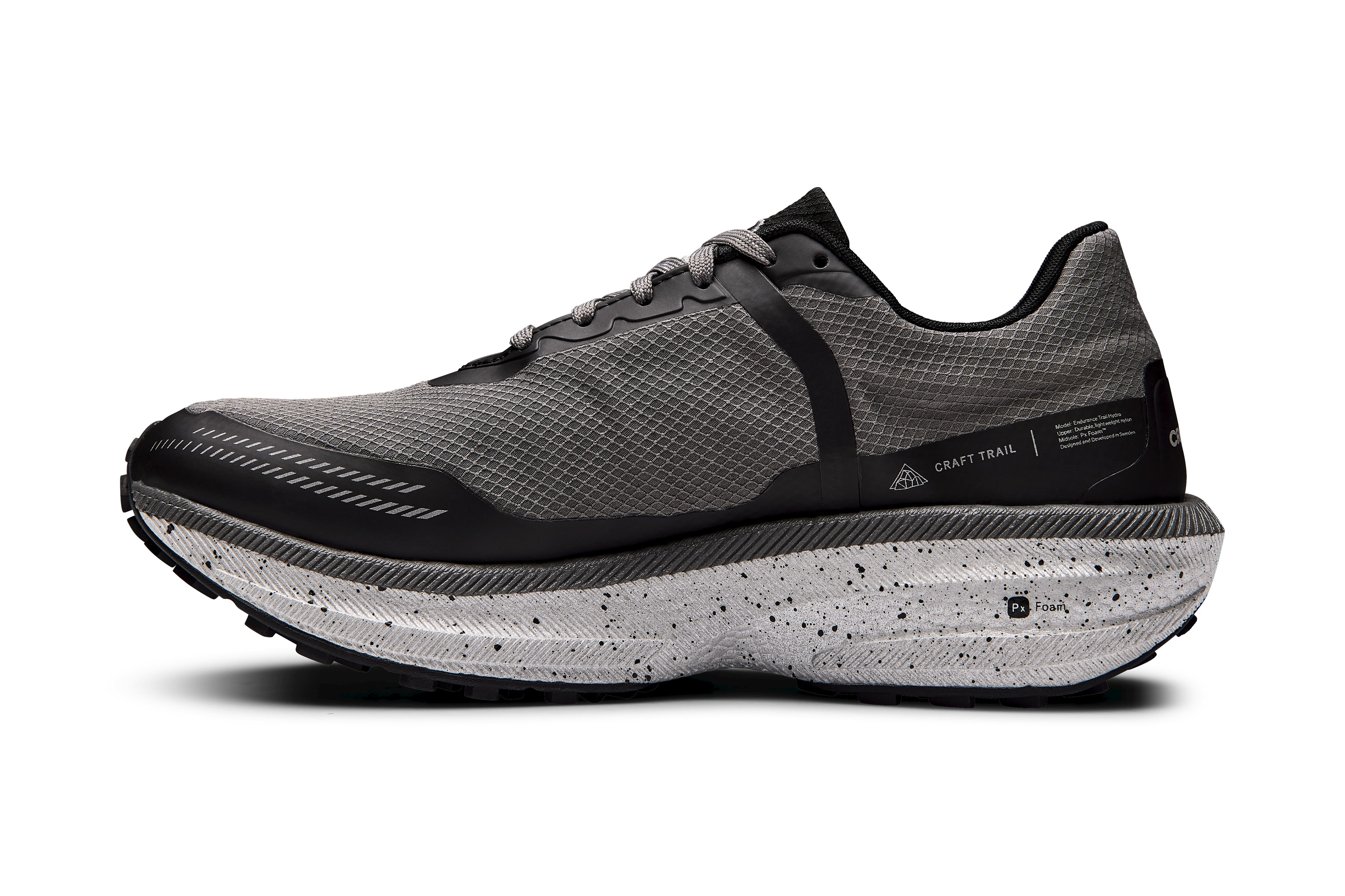 The CRAFT PRO Endurance Trail Hydro shoe features a completely waterproof upper while maintaining all the benefits that the Endurance platform provides.