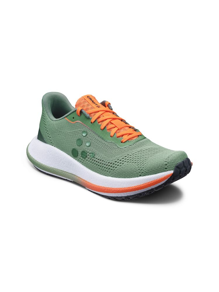 CRAFT Pacer 2 is the second generation of the road running shoe, featuring a new upper with a better fit, increased breathability, and durability. Combines lightweight construction with a technologically advanced Px Foam™ midsole, providing a lively and energetic feel with every step, making it ideal for both speed and volume training. The enhanced dual-layer mesh upper precisely follows the foot's ergonomics, improves ventilation, and offers a tighter and more secure fit for stable and comfortable running. Added foam in the collar further enhances comfort. If you are looking for a lightweight and responsive running shoe that provides both stability and speed, the Pacer 2 is a great choice. Innovative design and top-notch construction will help elevate your performance to the next level.