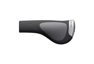 The original GP1 ergonomic grips set the global standard in ergonomics, comfort, materials and quality. Grips effectively counteract hand numbness, finger pain and forearm fatigue. Special certified material developed in Germany guarantees top quality.the aluminium sleeve fixes the grip in place and prevents it from moving while riding, while allowing perfect adjustment of the grip angle. Grips are compatible with carbon handlebars. The Evo version takes the original multi-award-winning comfort grip to the highest level of ergonomics and cycling comfort. Design, development and production are Made in Germany, which guarantees the highest quality product with increased sustainability and minimal waste production. Material: certified rubber compound Sleeve: aluminium Weight: 195 g Use: MTB, travel, commuting