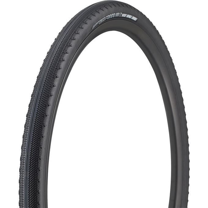 GO FARTHER, FASTER The Gavia Fondo AR tire extends your endurance road rides to include rougher roads and trails, as indicated by the "AR" or all-road in the tire's name. The fast-rolling RR-E compound combined with a low-profile centre tread promotes speed on paved and hard surfaces, while raised side lugs provide excellent grip on wet or loose surfaces. Protection against puncture is provided by a special R-Shield layer.