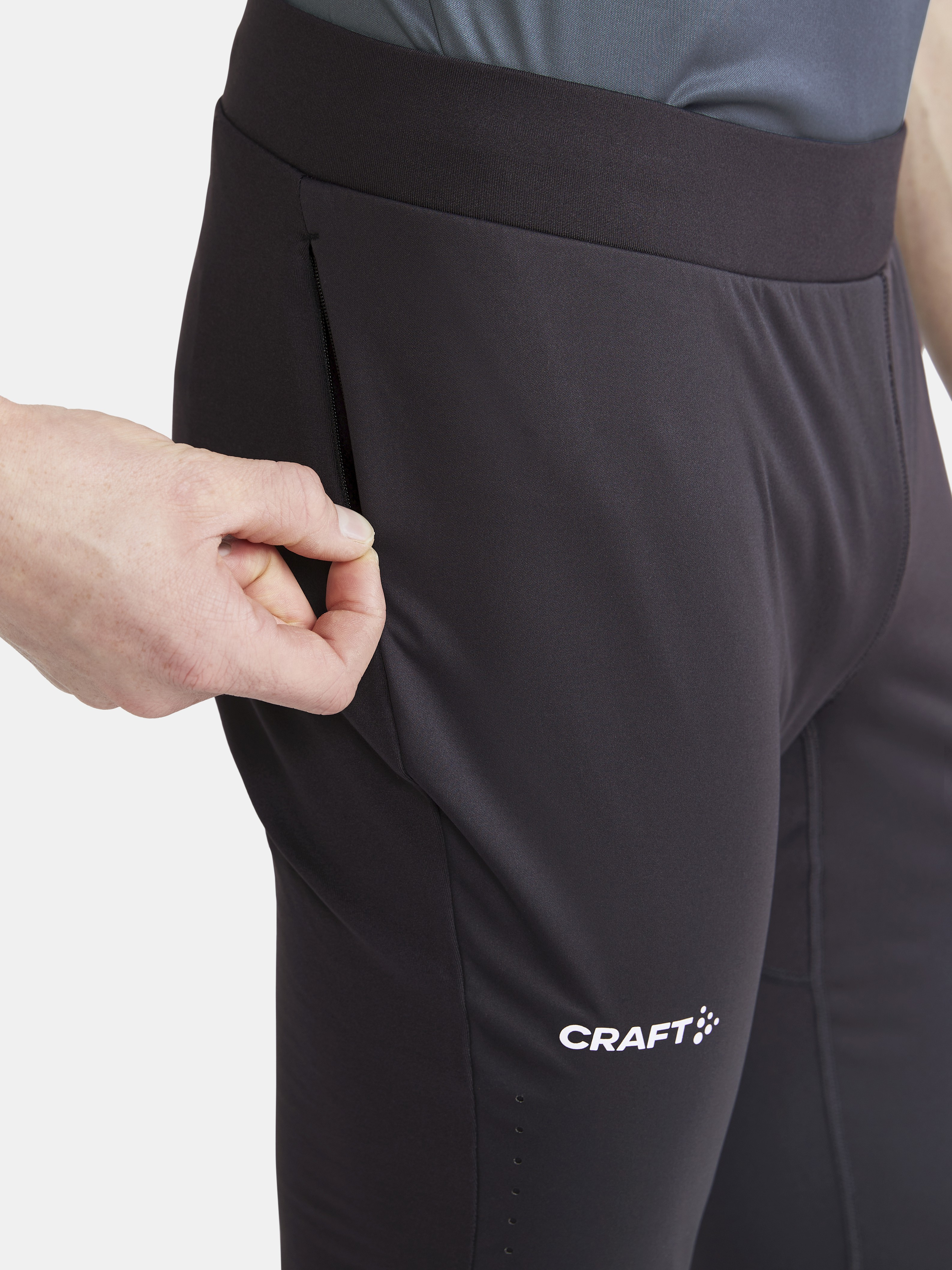 Pánské zateplené elastické kalhoty s membránou CRAFT ADV Essence Wind Tights jsou určeny primárně pro běh, ale i další aktivity v chladném prostředí. Materiál: 88% recyklovaný polyester, 12% elastan, Membrána: 100% polyurethan - na přední straně až pod kolena membrána chránící proti větru - od kolen dolů a na celé zadní straně strečový fleece - z vntřní strany jemný česaný fleecový povrch - v pase širší guma a možnost stažení šňůrkou - na pravém boku skrytá kapsička na zip - po stranách laserově řezaná ventilace - reflexní ošetření - ergonomický střih