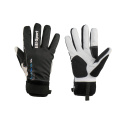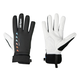 Race/training insulated glove made of 3-layer windproof material in the back which is stretchable and has a higher thermal insulation and sweat ventilation capacity. In the palm part, synthetic Clarino leather is used, which is reinforced between the thumb and index finger and on the palm. The glove is insulated with polyester lining, so it is suitable for colder weather. The top of the thumb is treated with a terry cloth material for wiping. The glove is finished in a neoprene cuff with a velcro strap.Machine washable. We recommend drying slowly. Upper material: 3-layer windproof material, stretchable Palm part: synthetic leather Clarino (60% Polyamide, 40% Polyurethane) Cuff: 100% Neoprene Material characteristics: Clarino® - is a strong synthetic leather with a composition of 60% Polyamide and 40% Polyurethane. The material breathes very well and has excellent sweat wicking parameters. The fabric can be washed without changing its unique properties. It is mainly used in the palms, fingers and for reinforcement.