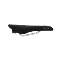 Men's cycling saddle with a wider design and comfortable gel padding designed for sportive riding with medium loads. The tall and slender shape is optimised for a comfortable, slightly upright sitting position. This is a handmade sports saddle, the cover is made of WeatherMax DuraLux, the padding is Comfort Foam + Comfort Gel and the rails are CroMo.