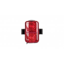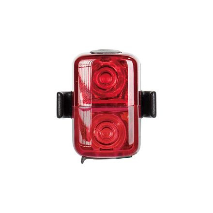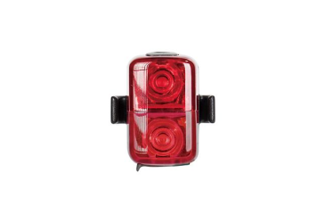 Compact and lightweight rear bike light with two high-brightness LEDs and USB charging. Easily attached with a rubber strap to your saddlebag, Topeak panniers or bike helmet. Maximum luminous flux: 30 Lumen Light source: RR: 2 super bright red LED's RY: 1 super bright red LED & 1 super bright yellow LED Battery: 3.7V 250mAh (integrated) Light modes: 3 hr (Constant) 3.5 hr (Upper : Constant / Lower : Blinking) 30 hr (Blinking) Charging: Micro USB / 2 hrs. Input: 5V 500mA Light material: injection moulded polymer Fixing: rubber belt, on saddlebag (ø25.4 - ø34.9mm), Topeak panniers, cycling helmet Waterproof: IPX 6 Dimensions: 3.9 x 3.7 x 2.1 cm Weight: 17g