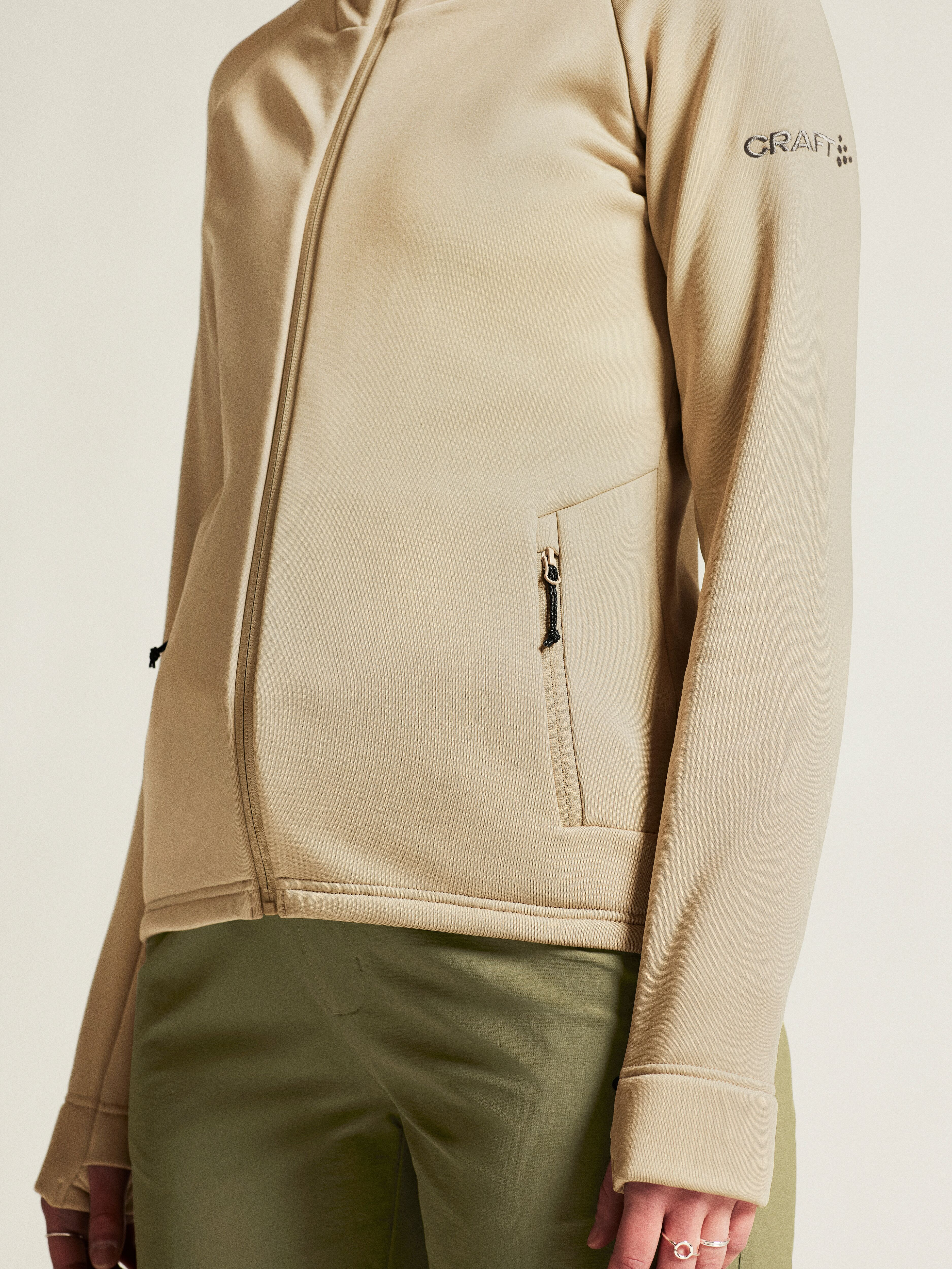 Dámská fleecová mikina CRAFT ADV Explore Power Fleece Hood je vyrobena z velmi příjemného strečového materiálu, který má z vnitřní strany brush pro maximální tepelný komfort.