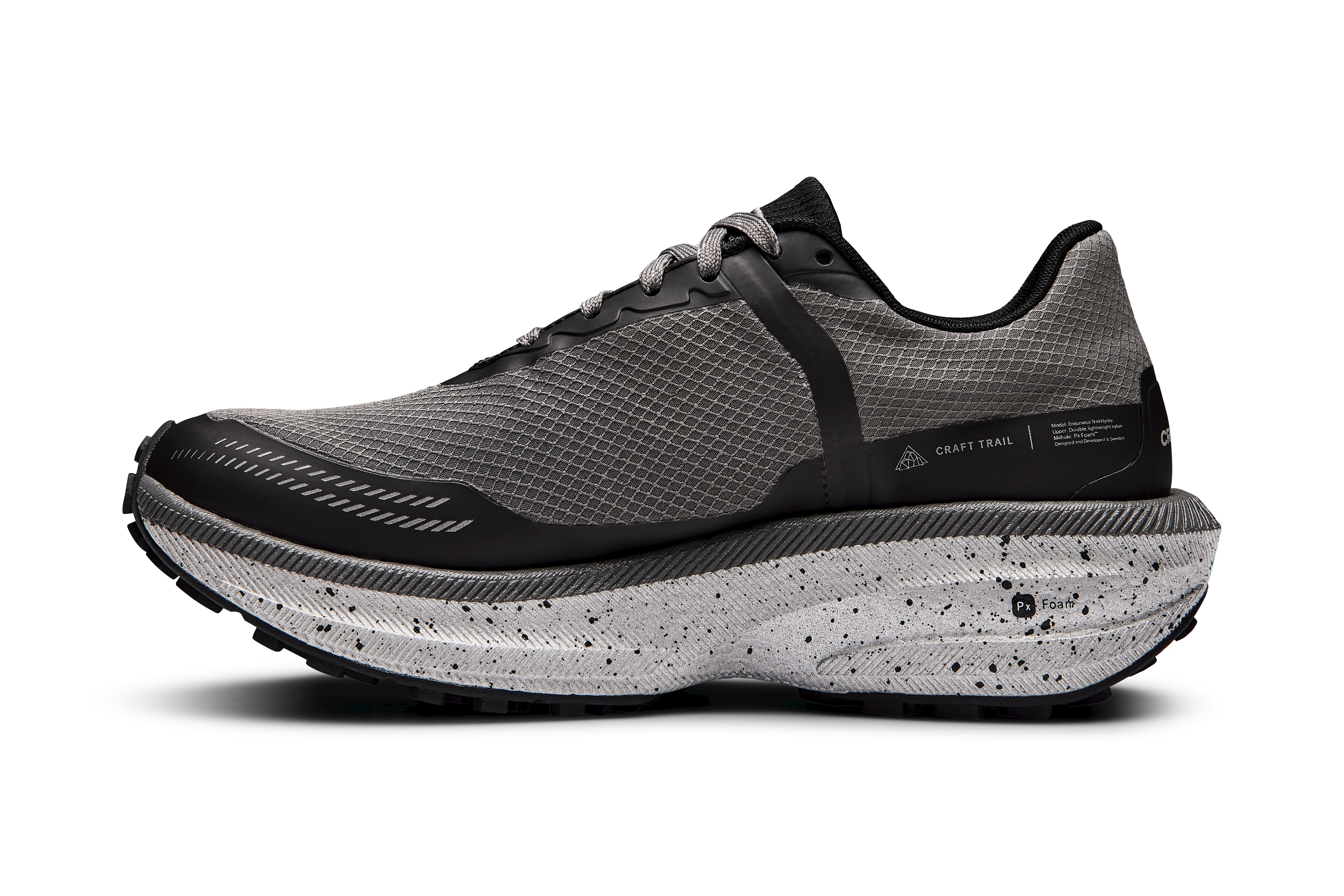 The CRAFT PRO Endurance Trail Hydro shoe features a completely waterproof upper while maintaining all the benefits that the Endurance platform provides.