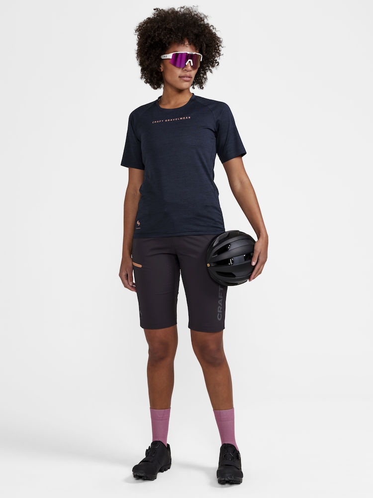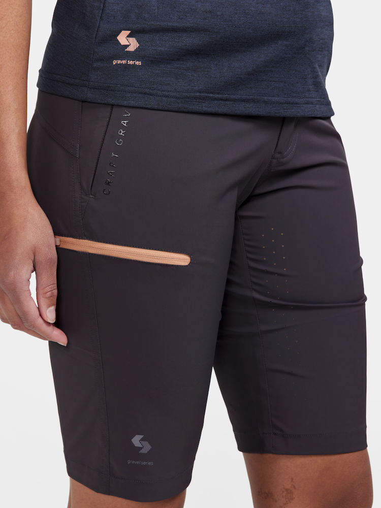 Dámské šortky CRAFT PRO Gravel užšího střihu určené pro intenzivní gravel ježdění. Nabízí to nejdokonalejší z celé cyklistické kolekce. Bez vnitřních boxerek s cyklovložkou.