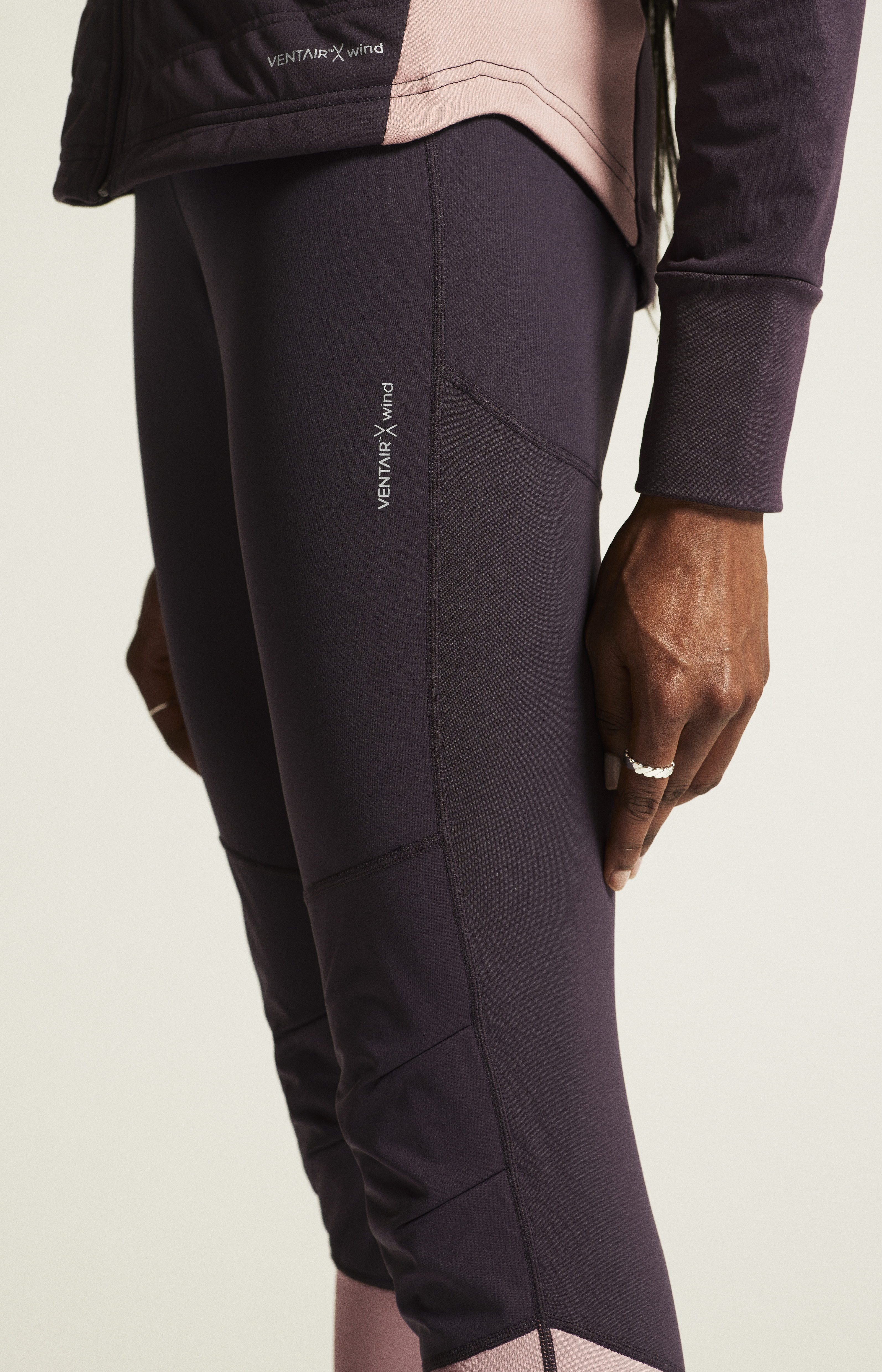 - větruodolný materiál na přední straně kalhot