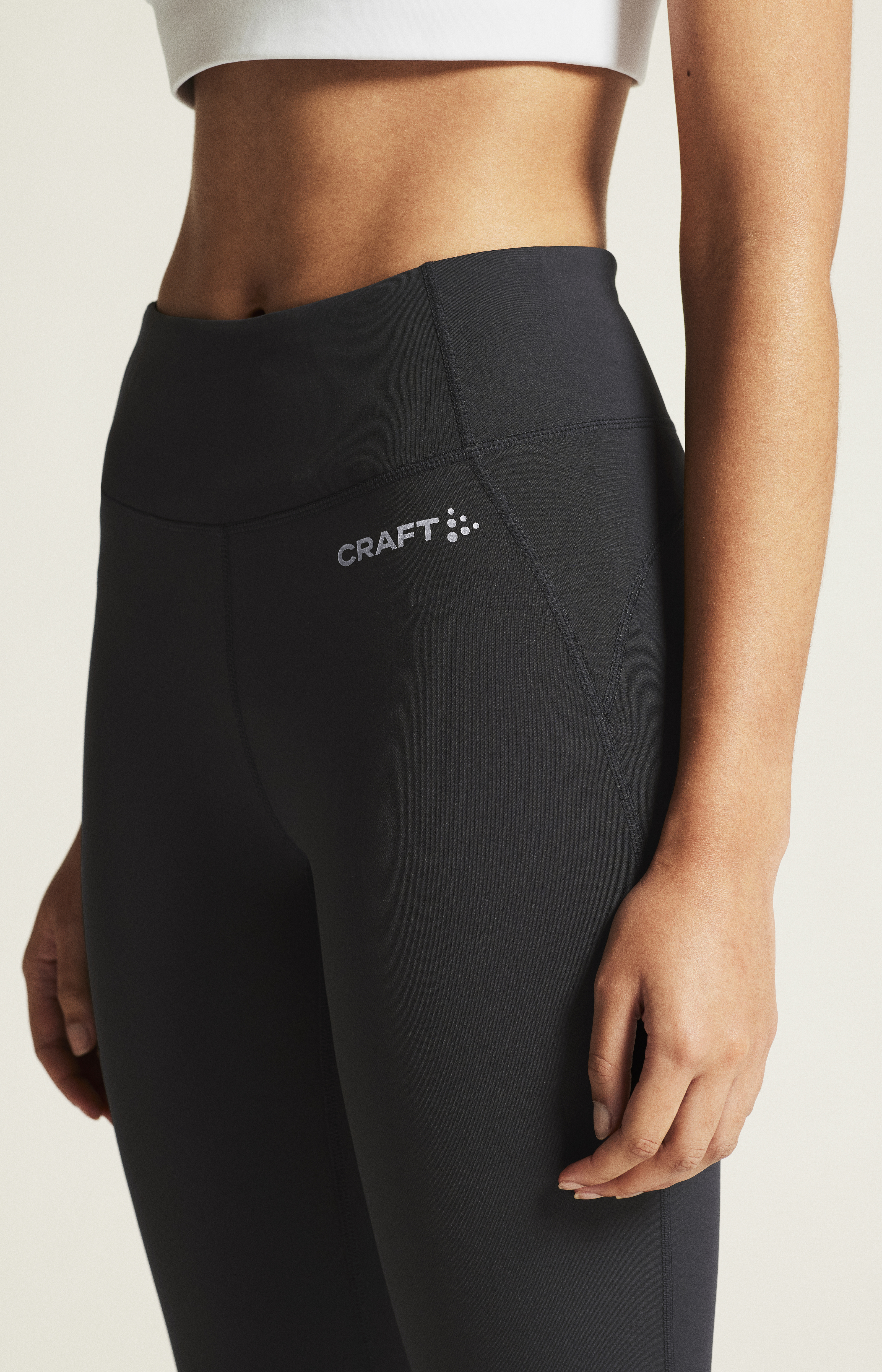 Jednoduché tréninkové elastické kalhoty CRAFT CORE Essence Tights 2 jsou vyrobeny z příjemného funkčního materiálu.