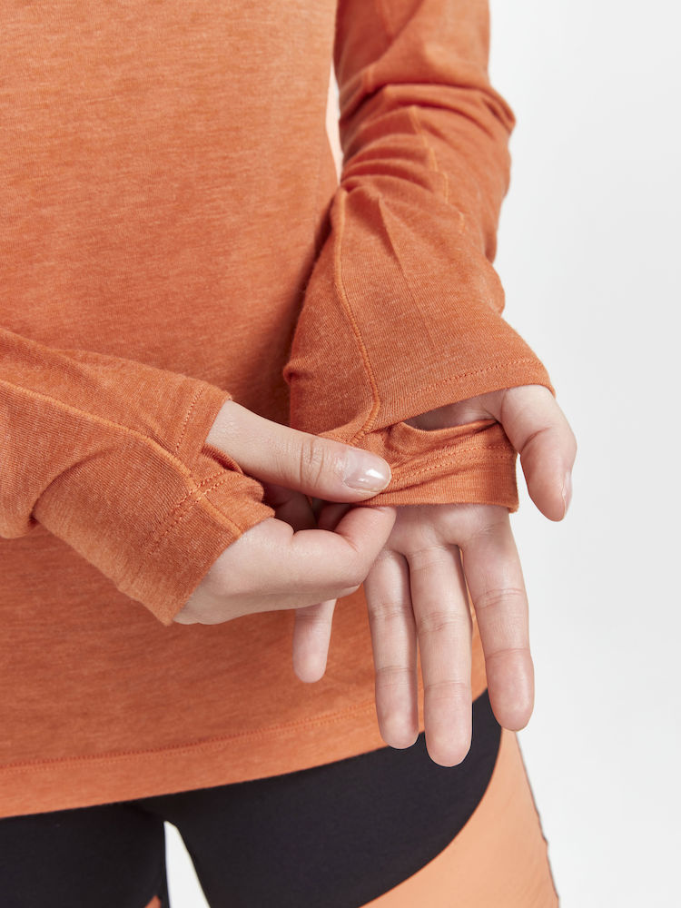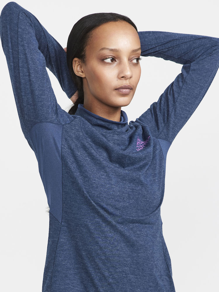 Women's lightweight ADV SubZ Wool LS shirt with a blend of merino wool provides you with optimal thermal comfort along with perfect excess heat dissipation during your run in cooler weather.