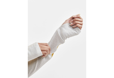 - rukávy ukončeny do široké manžety s otvorem pro přetažení přes palec